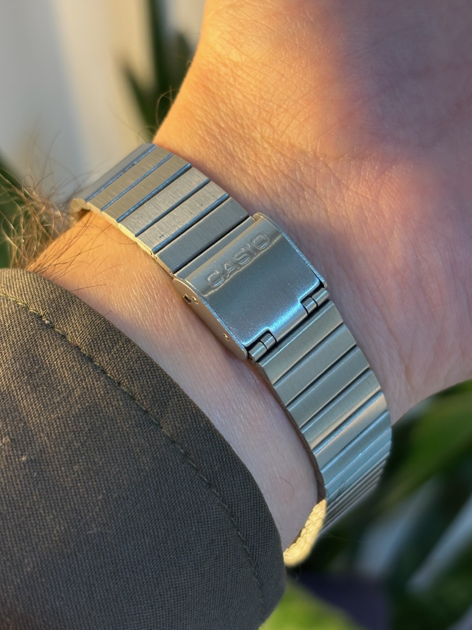 طراحی برگرفته از فشن دهه 1980, زمانسنجی منظم شامل سه عقربه ثانیه، دقیقه و ساعتشمار