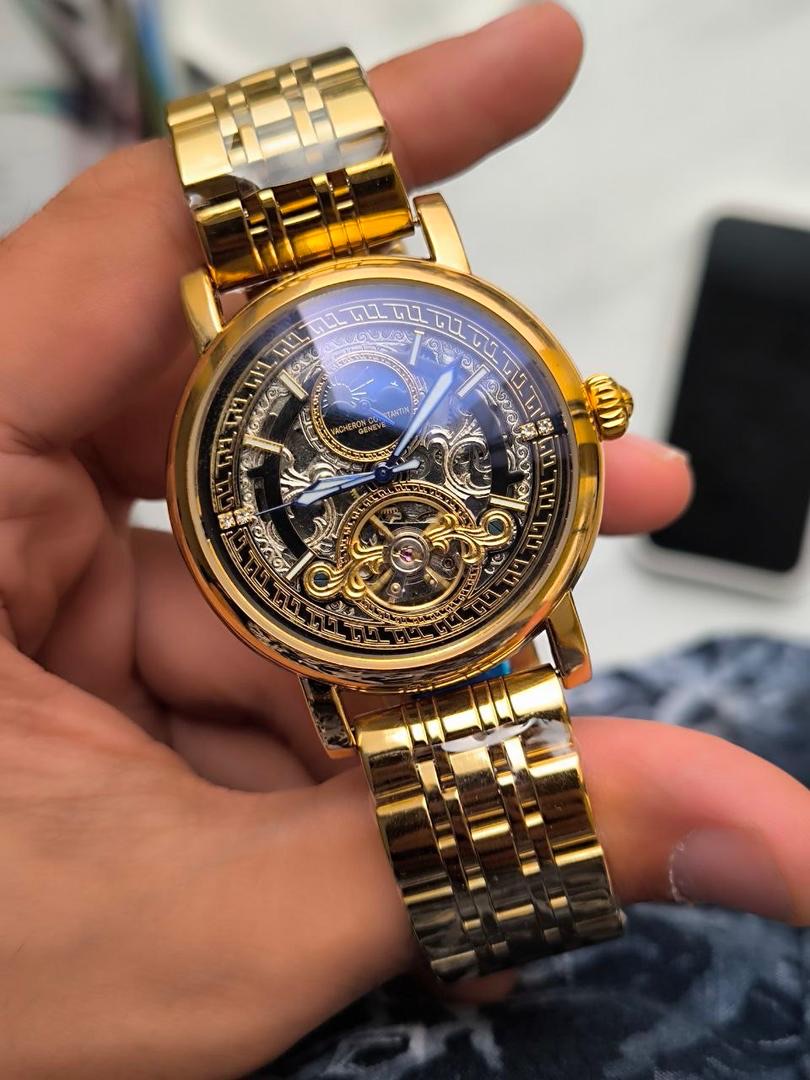 ✅برند :پتک فیلیپ ✅اتومات بدون نیاز به باطری ✅پشت ساعت شیشه ای ✅رنگ ثابت ✅منبع:اتوماتیک ساخت ژاپن منبع تغذیه کوک و لرزش دست ✅ضد آب ✅دارای تقویم شب و روز ✅دو قفله مخفی
