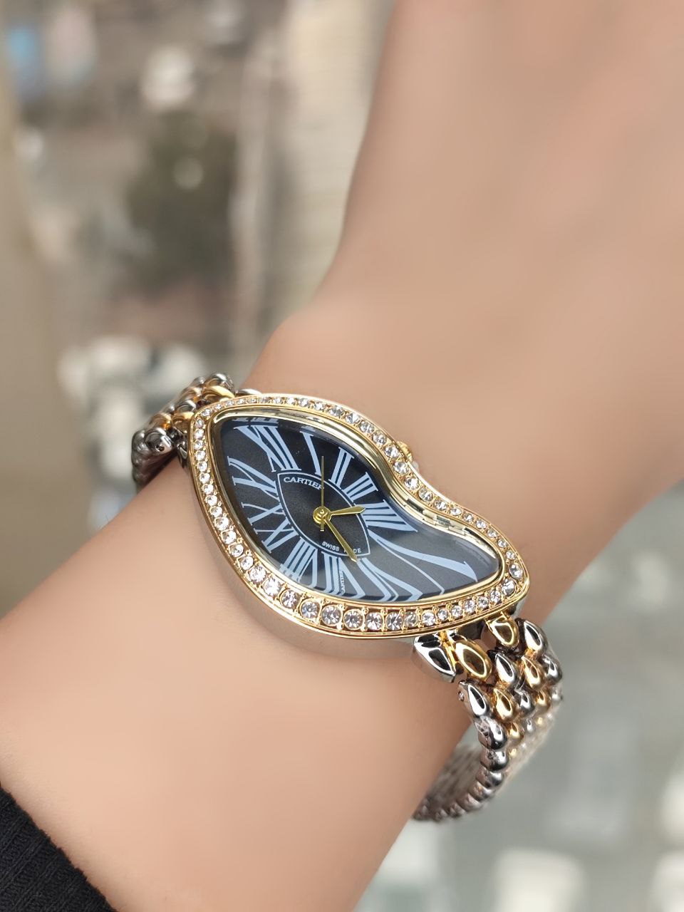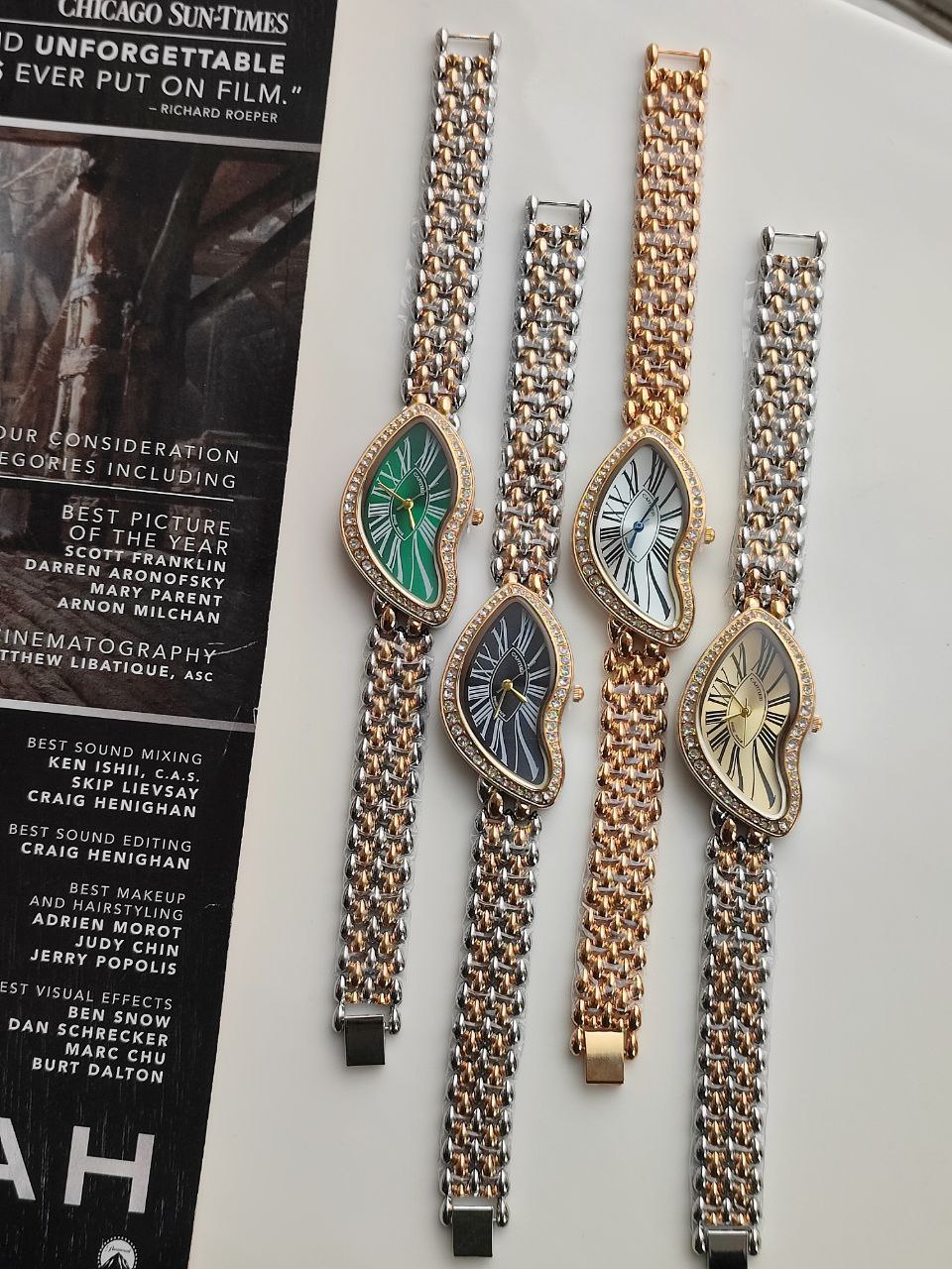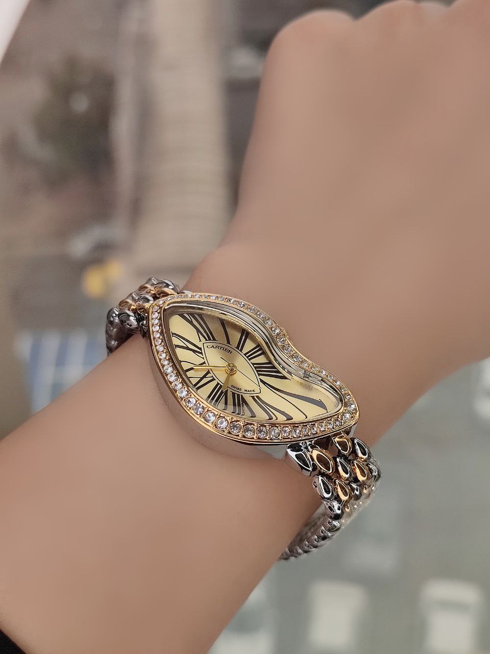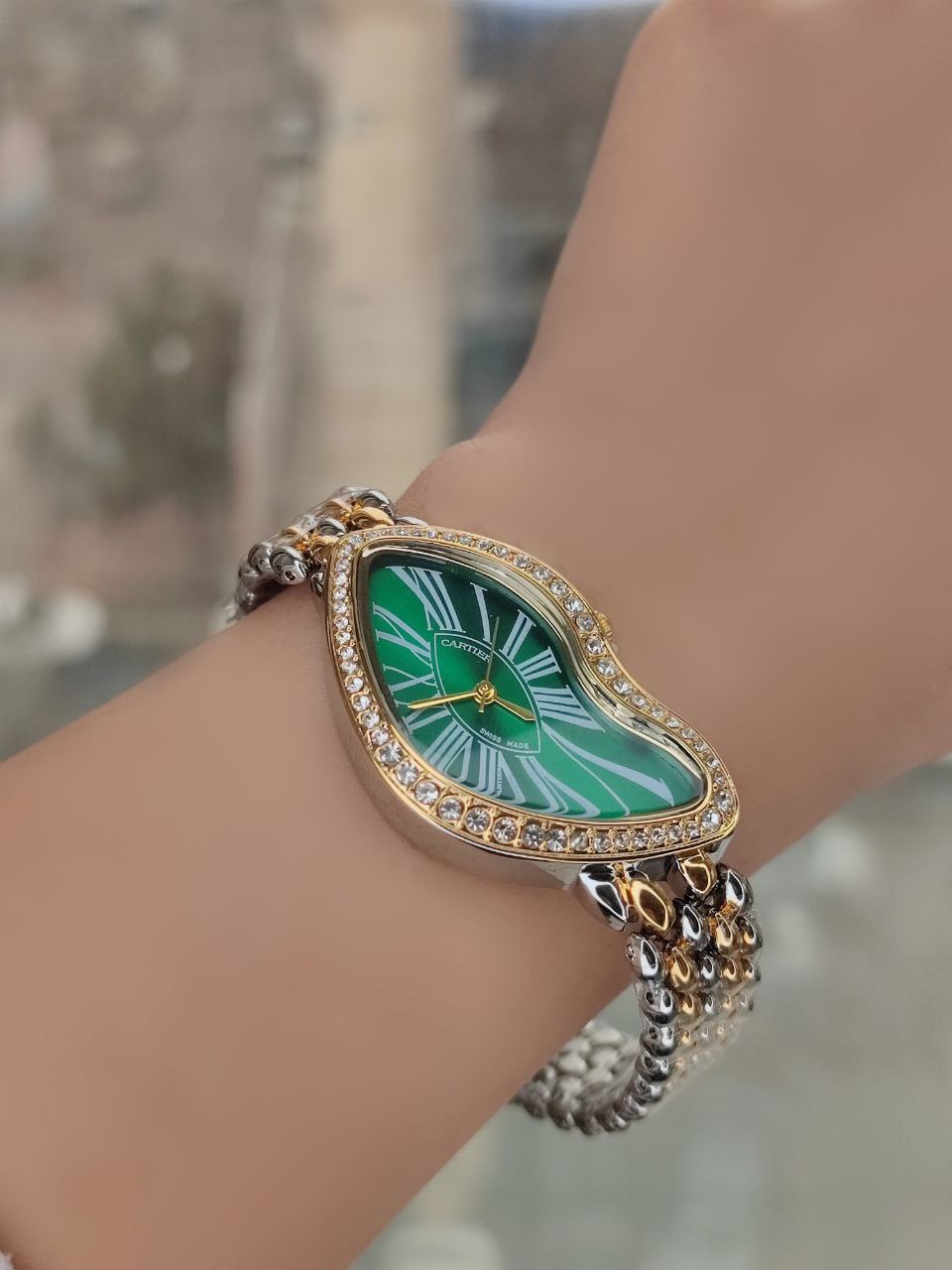 💎طراحی منحصر به فرد با بند طلایی و صفحه موج دار و زیبا